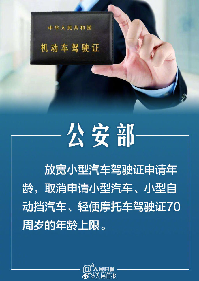 2020-10-22 14:49:22閱讀()人民日報公安部:放寬小型汽車駕駛證申請年齡,取消申請駕駛證70周歲年齡上限