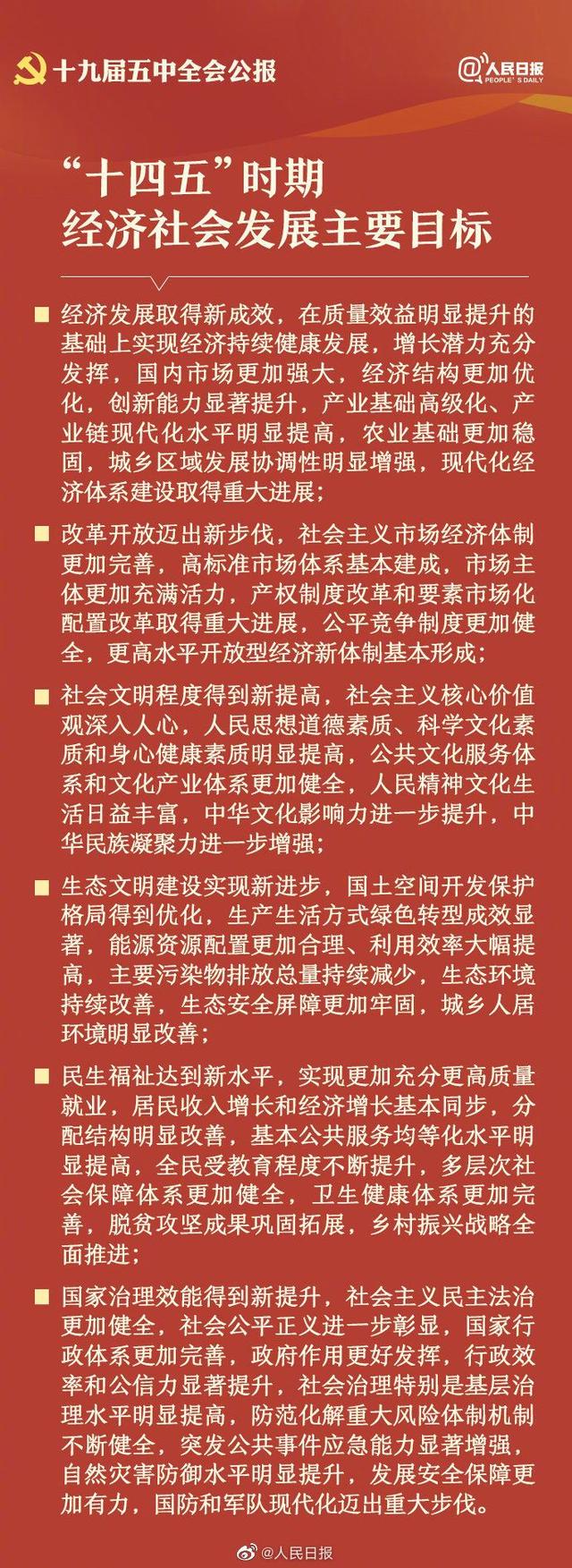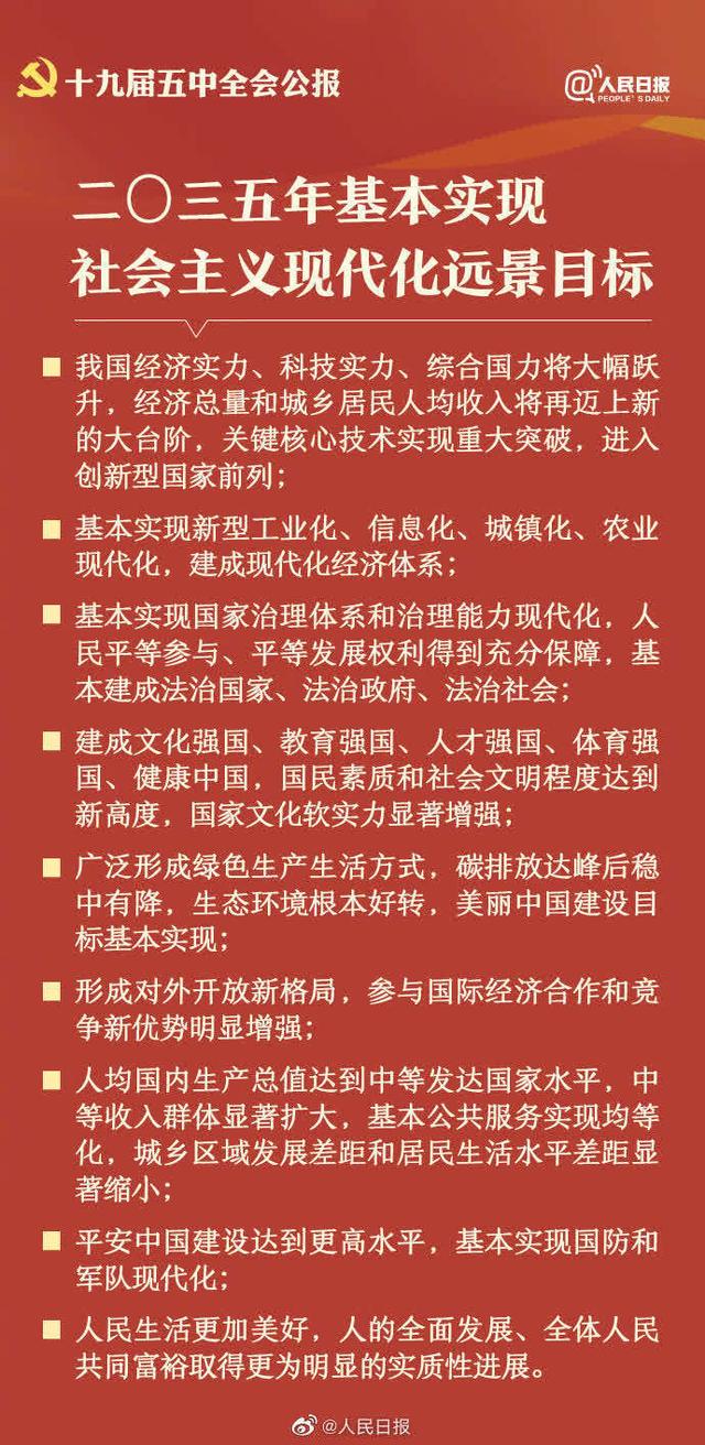 10月29日,中國共產(chǎn)黨第十九屆中央委員會第五次全體會議公報發(fā)布。全會高度評價決勝全面建成小康社會取得的決定性成就,提出了到二〇三五年基本實現(xiàn)社會主義現(xiàn)代化遠景目標(biāo)以及“十四五”時期經(jīng)濟社會發(fā)展主要目標(biāo)。中國將如何實現(xiàn)這一宏偉藍圖,14個關(guān)鍵詞速讀五中全會公報。