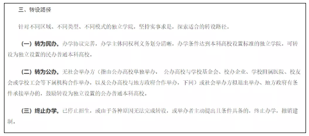 原則上,中央部門所屬高校、部省合建高校舉辦的獨(dú)立學(xué)院要率先完成轉(zhuǎn)設(shè),其他獨(dú)立學(xué)院要盡早完成轉(zhuǎn)設(shè)。