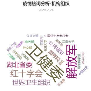另外,從機(jī)構(gòu)來(lái)看,最受關(guān)注的不出意料是衛(wèi)健委。從1月3日,武漢衛(wèi)健委通報(bào)不明原因肺炎開(kāi)始,衛(wèi)健委就一直處于疫情防控的輿論中心,也一直承擔(dān)著辟謠的工作,所以衛(wèi)健委關(guān)聯(lián)度最大的兩個(gè)詞便是“回應(yīng)”。“衛(wèi)健委回應(yīng)部分中成藥可防治肺炎”;“國(guó)家衛(wèi)健委回應(yīng)黃岡衛(wèi)健委主任被免職”;“衛(wèi)健委回應(yīng)公布數(shù)據(jù)與網(wǎng)傳數(shù)據(jù)差太多”……