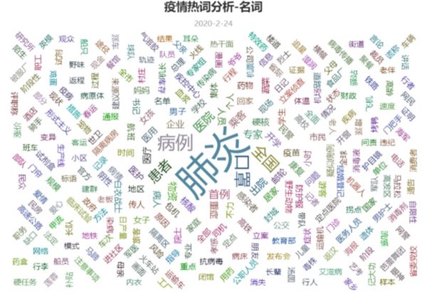對(duì)熱搜進(jìn)行了分詞然后進(jìn)行統(tǒng)計(jì),我們發(fā)現(xiàn)出現(xiàn)最多的是“肺炎”和“新增”兩個(gè)詞,顯然,這兩個(gè)詞也是最牽動(dòng)人心的。