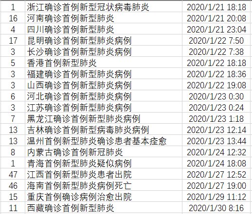 除了湖北、武漢,幾乎每個(gè)省份或者大城市確診首例肺炎患者都會(huì)上一次熱搜,牽動(dòng)著這個(gè)省市所有人的心。