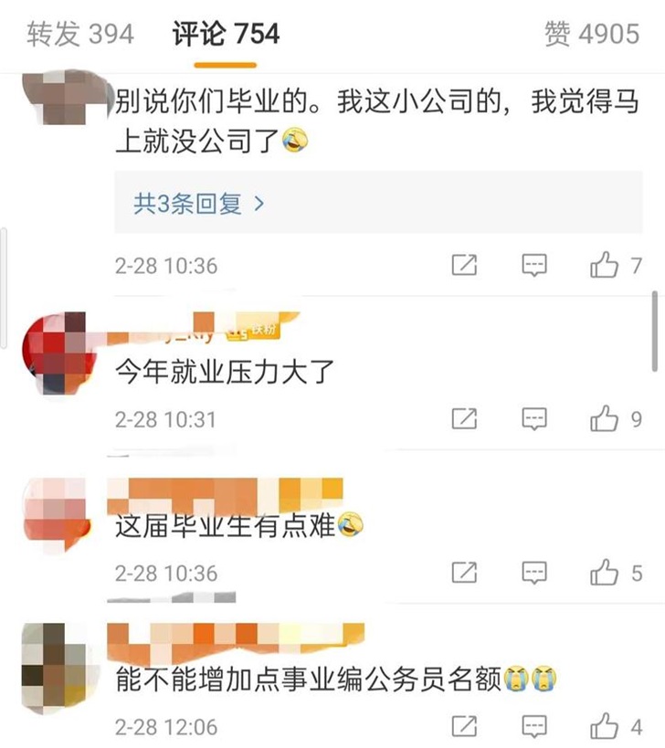 微博上對(duì)于就業(yè)難的話題討論同樣此起彼伏。