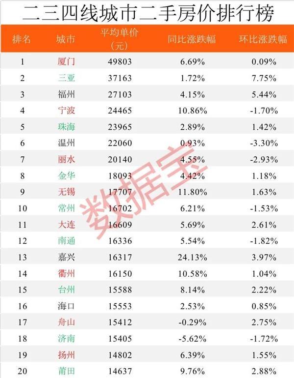 當前的二三四線城市中,已經(jīng)有59個城市二手房均價在萬元以上。除了廈門三亞房價高高在上外,福州、寧波、珠海、溫州、麗水等城市去年底房價均超過2萬元。