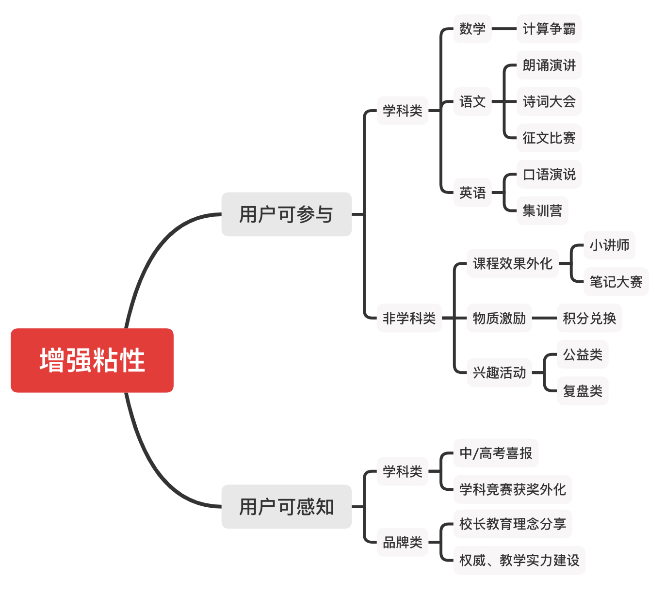 除了在大時期上的把控,匹配合適的活動,在非招生類增強(qiáng)黏性的動作中,可以從以下緯度上去探索。