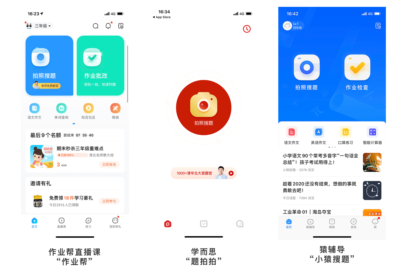 目前作業(yè)幫、學(xué)而思、猿輔導(dǎo)等品牌均對拍照搜題做了布局。通過這個環(huán)節(jié)可以用自家圈起來的流量持續(xù)做轉(zhuǎn)化。