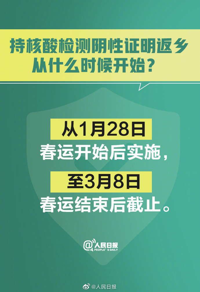 持核酸檢測(cè)陰性證明返鄉(xiāng)從1月28日春運(yùn)開(kāi)始后實(shí)施,至3月8日春運(yùn)結(jié)束后截止。