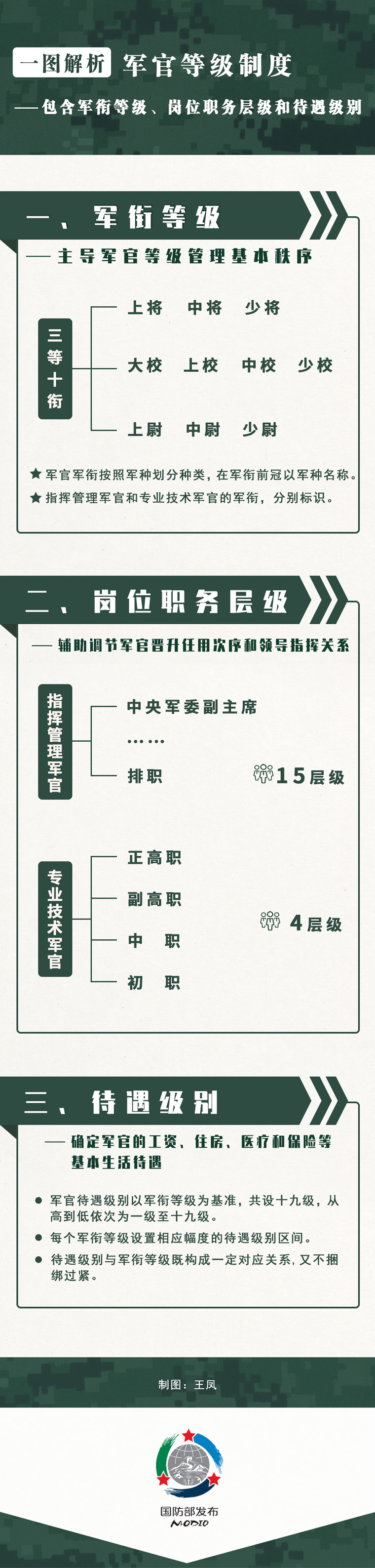 2021-01-29 14:16:25閱讀()國(guó)防部1月28日,國(guó)防部發(fā)言人吳謙詳細(xì)介紹了新的軍官等級(jí)制度。新的軍官制度對(duì)軍官等級(jí)設(shè)置作出重大改革,由基于職務(wù)等級(jí)調(diào)整為基于軍銜等級(jí)。“三等十銜”都是什么?#碩博畢業(yè)后將授予什么軍銜#?軍官崗位如何分類?(國(guó)防部發(fā)布) ????