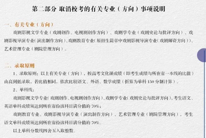 (節(jié)選自:中央戲劇學(xué)院2020年本科招生專業(yè)考試調(diào)整方案)