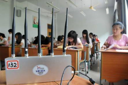 因為第一種方法對普通老百姓的影響太大(室外基站的信號覆蓋范圍較大,達到幾平方公里甚至十幾平方公里,可能遠遠超過學校的面積,不太合適)。所以,通常各地都會使用第二種方法,引入信號屏蔽器,使其工作功率控制在合適的范圍,只屏蔽考場區(qū)域的手機信號。