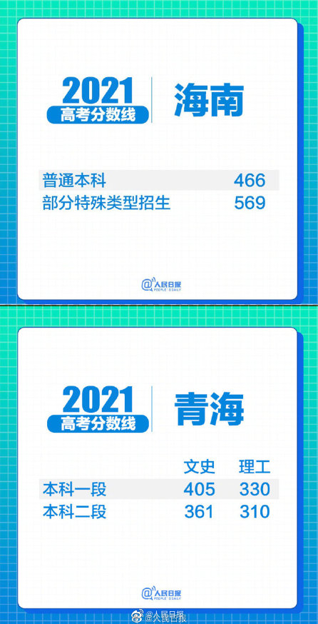 2021-06-26 17:23:14閱讀()人民日?qǐng)?bào)31省區(qū)市2021高考分?jǐn)?shù)線匯總,截至目前,31個(gè)省區(qū)市已陸續(xù)公布了2021年高考各批次錄取分?jǐn)?shù)線↓↓祝大家都能進(jìn)入自己理想的大學(xué)! ????