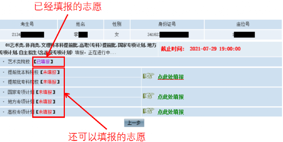 下圖以藝術(shù)類考生填報(bào)為例(志愿數(shù)量?jī)H為示例):