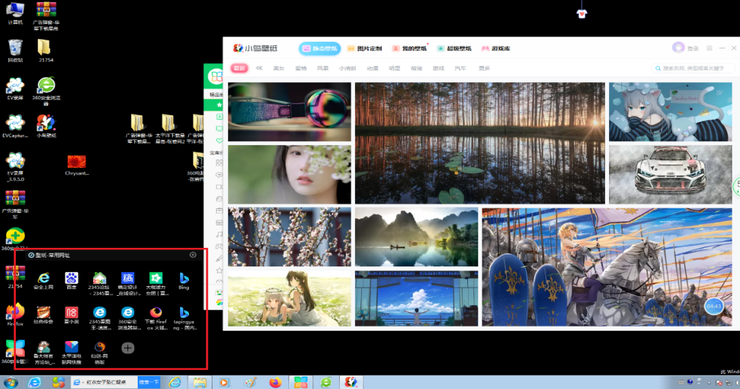 △圖為小鳥壁紙安裝過程中強制安裝“IE”,“IE”點開后出現(xiàn)“壁紙常用網(wǎng)址”彈窗