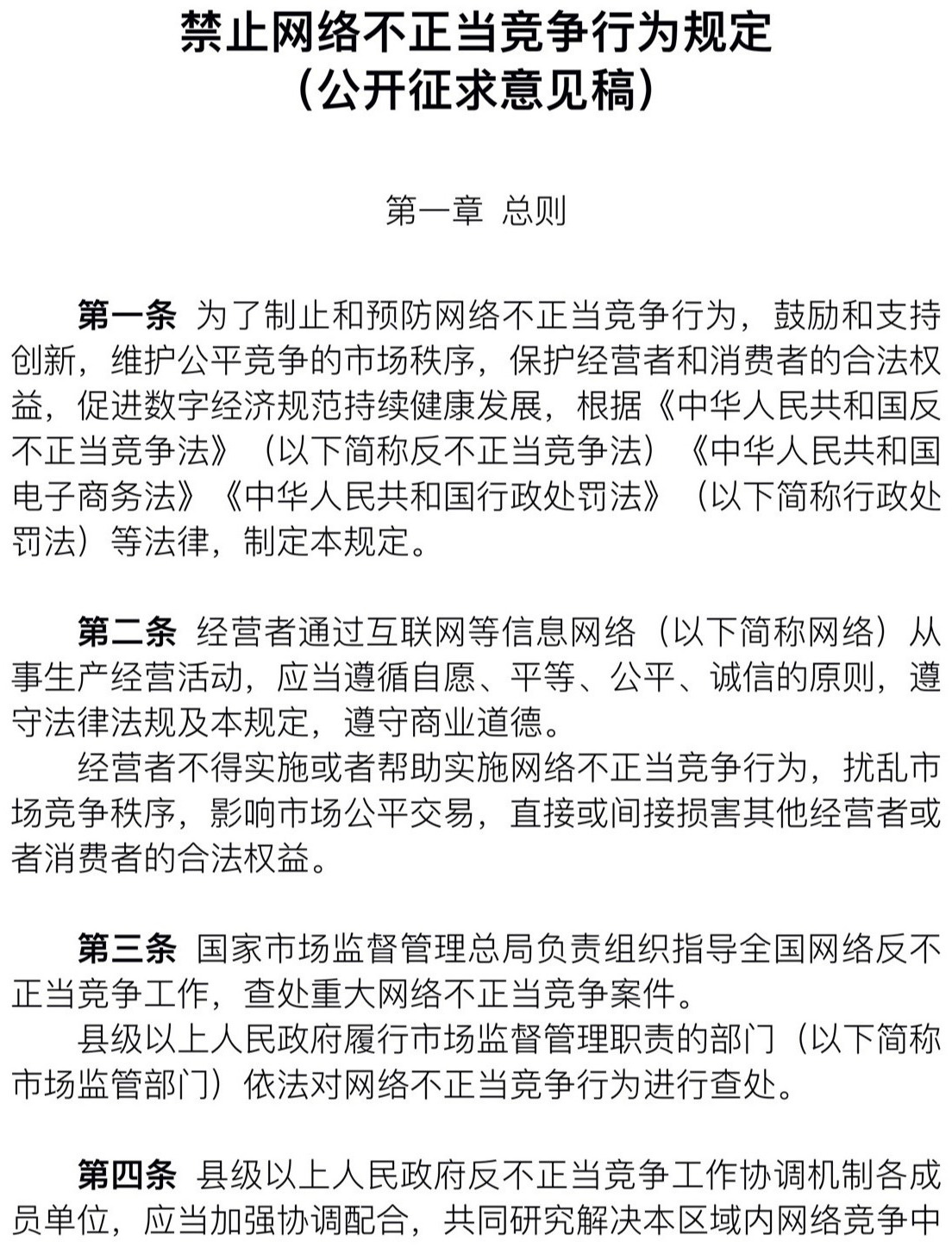 國(guó)家市場(chǎng)監(jiān)督管理總局就《禁止網(wǎng)絡(luò)不正當(dāng)競(jìng)爭(zhēng)行為規(guī)定》征求意見(jiàn)