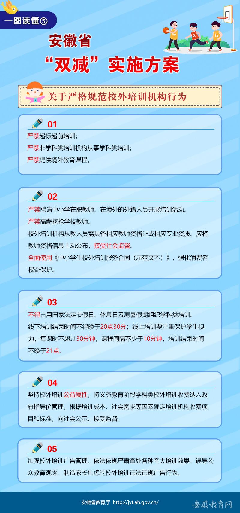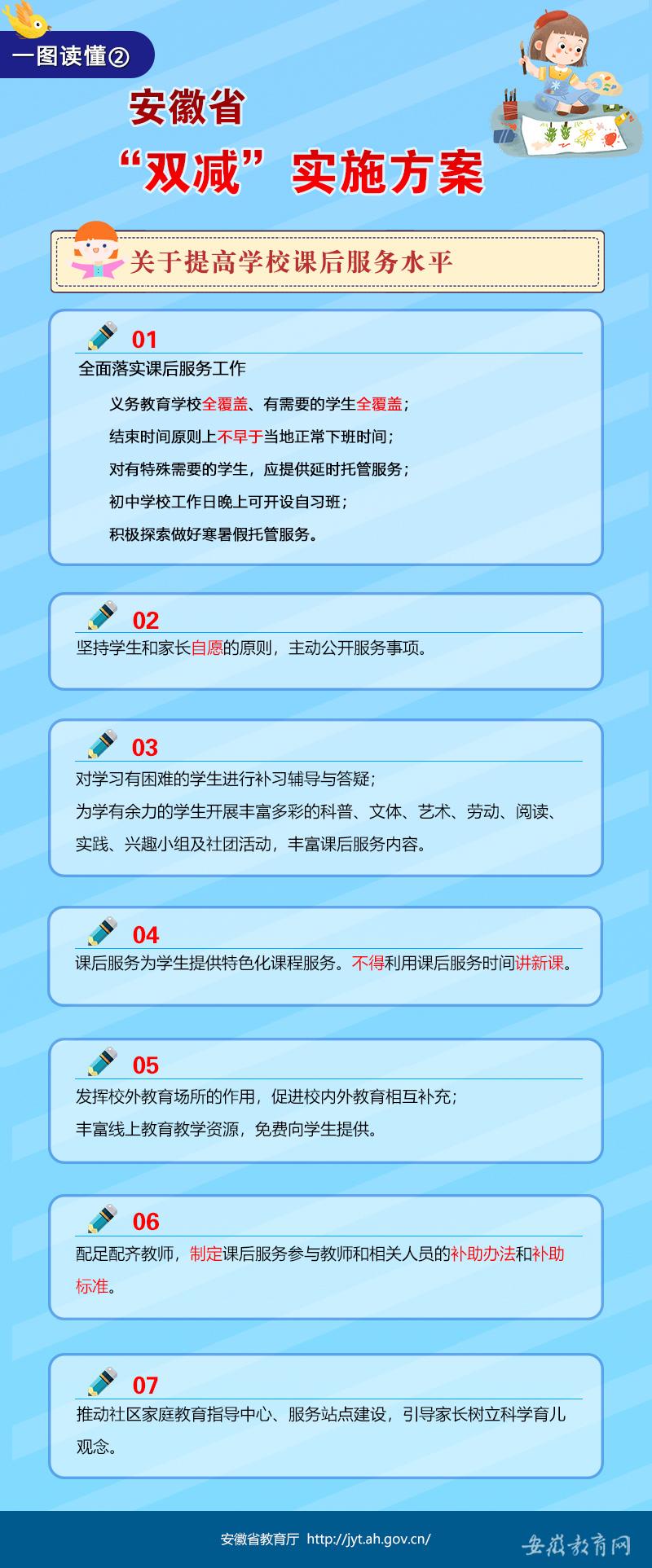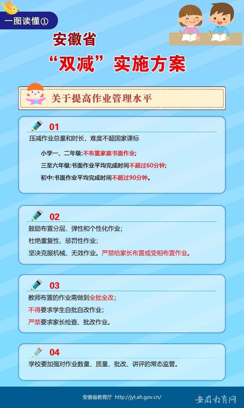 一圖讀懂《安徽省進一步減輕義務教育階段學生作業(yè)負擔和校外培訓負擔的實施方案》