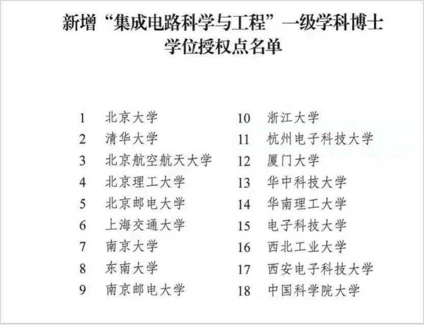 全國首批18所高校,集成電路科學(xué)與工程一級學(xué)科博士學(xué)位授權(quán)點出爐