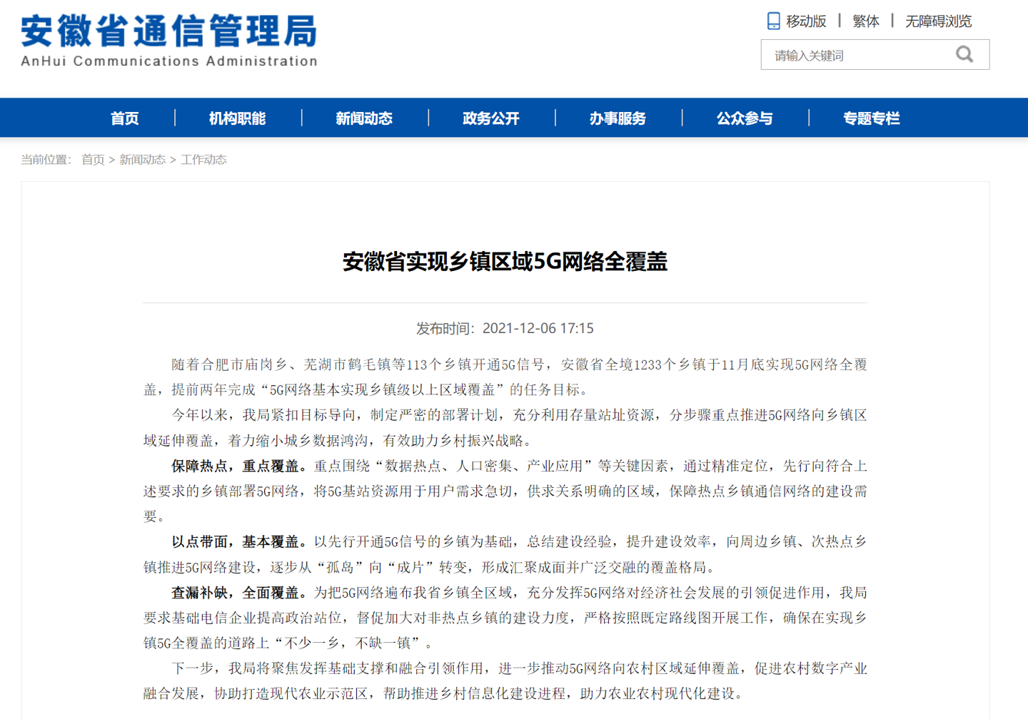 安徽:實現(xiàn)鄉(xiāng)鎮(zhèn)區(qū)域5G網(wǎng)絡全覆蓋