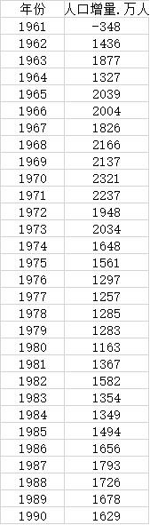 數(shù)據(jù)顯示,受三年自然災害影響,1960年、1961年總?cè)丝谶B續(xù)兩年下降。1962年迅速反彈,當年凈增人口達到了1436萬人。其后,從1963年開始到1975年,年凈增人口均超過了1500萬人。1976年后凈增人口數(shù)量雖然有所下降,但也都在1100萬以上。尤其是,從1986年到1990年凈增人口均超過了1500萬人。進入上世紀九十年代,凈增人口也一直保持在1000萬以上。