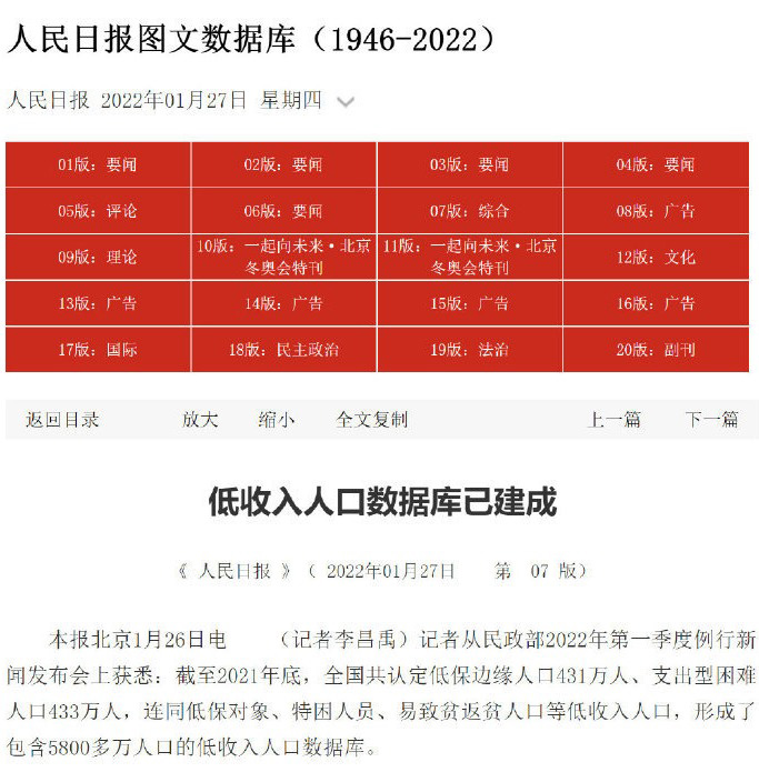 2022-01-27 22:34:57閱讀()人民日報1月27日消息,據(jù)人民日報報道,民政部2022年第一季度例行新聞發(fā)布會上透露,截至2021年底,全國共認(rèn)定低保邊緣人口431萬人、支出型困難人口433萬人,連同低保對象、特困人員、易致貧返貧人口等低收入人口,形成了包含5800多萬人口的低收入人口數(shù)據(jù)庫。
