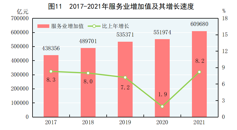 [17]戰(zhàn)略性新興服務(wù)業(yè)包括新一代信息技術(shù)產(chǎn)業(yè)、高端裝備制造產(chǎn)業(yè)、新材料產(chǎn)業(yè)、生物產(chǎn)業(yè)、新能源汽車產(chǎn)業(yè)、新能源產(chǎn)業(yè)、節(jié)能環(huán)保產(chǎn)業(yè)和數(shù)字創(chuàng)意產(chǎn)業(yè)等八大產(chǎn)業(yè)中的服務(wù)業(yè)相關(guān)行業(yè),以及新技術(shù)與創(chuàng)新創(chuàng)業(yè)等相關(guān)服務(wù)業(yè)。2021年戰(zhàn)略性新興服務(wù)業(yè)企業(yè)營業(yè)收入增速按可比口徑計(jì)算。