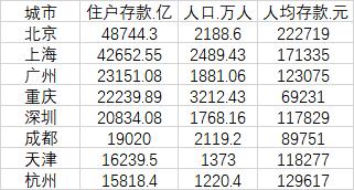 5城住戶存款超2萬億,北京人均存款超20萬元
