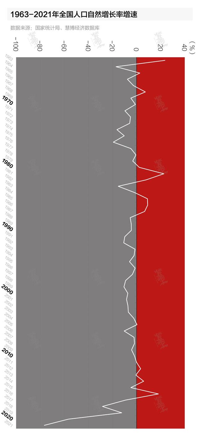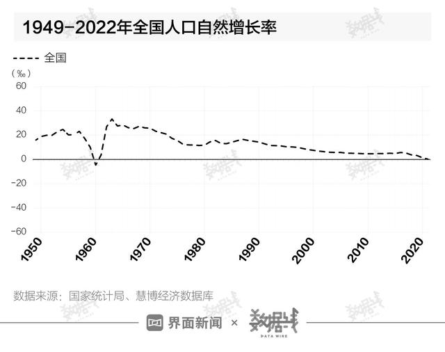 從整體趨勢(shì)而言,據(jù)國(guó)家統(tǒng)計(jì)局?jǐn)?shù)據(jù),1963年至今,全國(guó)人口自然增長(zhǎng)率由最高33.33‰降至0.34‰,累計(jì)下降32.99個(gè)千分點(diǎn)。