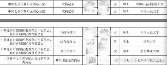 無(wú)獨(dú)有偶!北京市朝陽(yáng)區(qū)人民政府官方網(wǎng)站近日公示了兩批2022年考試錄用公務(wù)員擬錄用人員名單。其中一名來(lái)自北京大學(xué)的博士擬錄用為某街道的城市管理執(zhí)法崗也引發(fā)熱議。除此之外,該擬錄用名單上的人員多來(lái)自海內(nèi)外名校,學(xué)歷大部分為碩士及以上。
