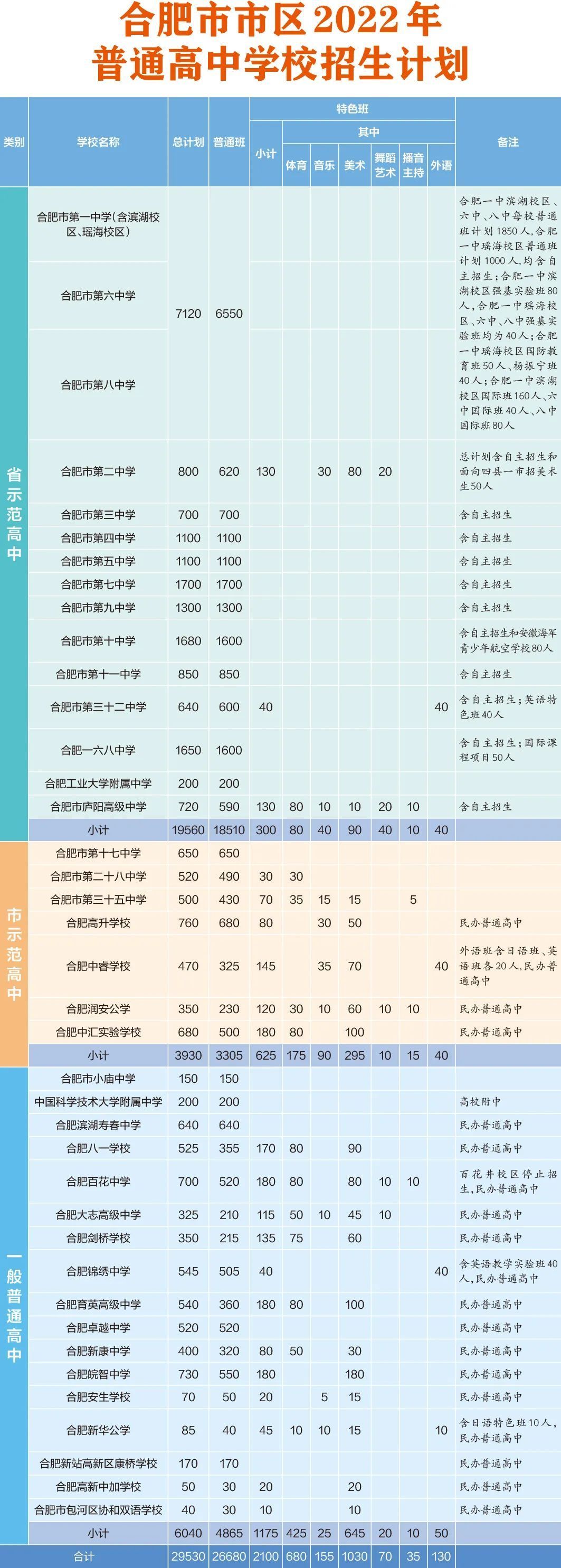 2022-06-18 09:14:22閱讀()合肥市教育局據(jù)合肥市教育局發(fā)布消息,6月17日,2022年合肥市區(qū)省示范高中指標到校生計劃公布。