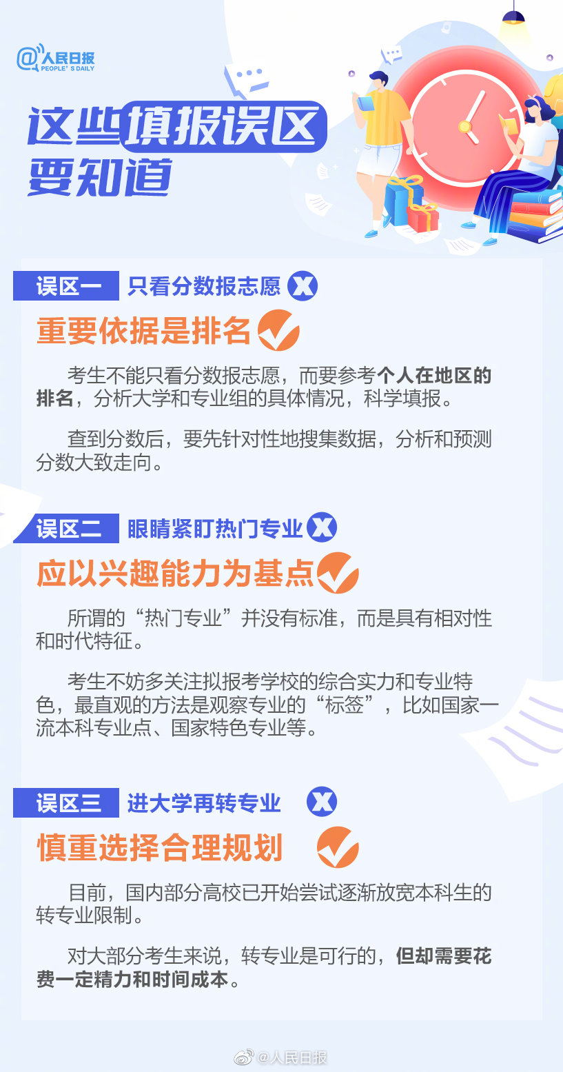 2022-06-23 17:13:11閱讀()人民日報今起,多地高考成績陸續(xù)公布,志愿填報馬上開始。今年招生新增了哪些專業(yè)?招生章程怎么看?面對眾多院校和專業(yè),選理想學(xué)校還是選理想專業(yè)?進(jìn)了大學(xué)校門就能隨意轉(zhuǎn)專業(yè)嗎?報志愿如何避免滑檔?