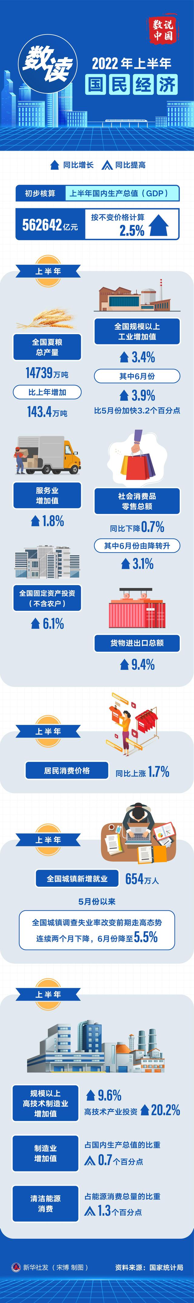數(shù)讀2022年上半年國民經(jīng)濟(jì)