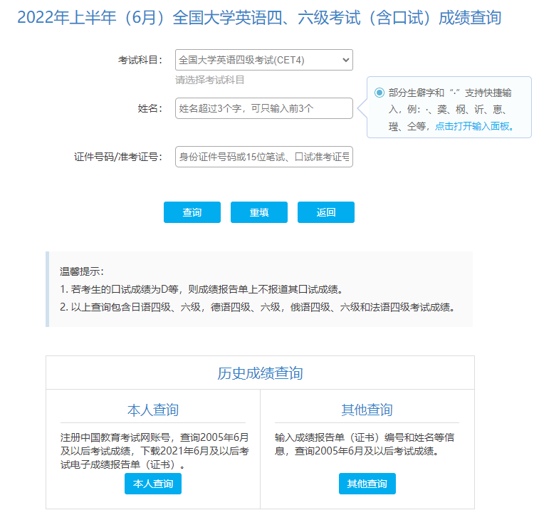 2022年上半年全國大學(xué)英語四、六級(jí)考試成績查詢