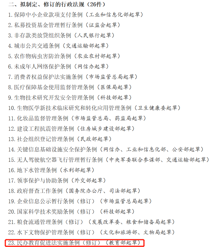 民辦教育促進(jìn)法實(shí)施條例列入國(guó)務(wù)院2020年立法計(jì)劃