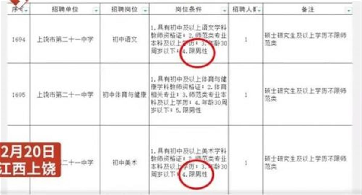 江西一中學(xué)多崗位只招男性,校方回應(yīng):是特殊教育學(xué)校,男老師方便管理