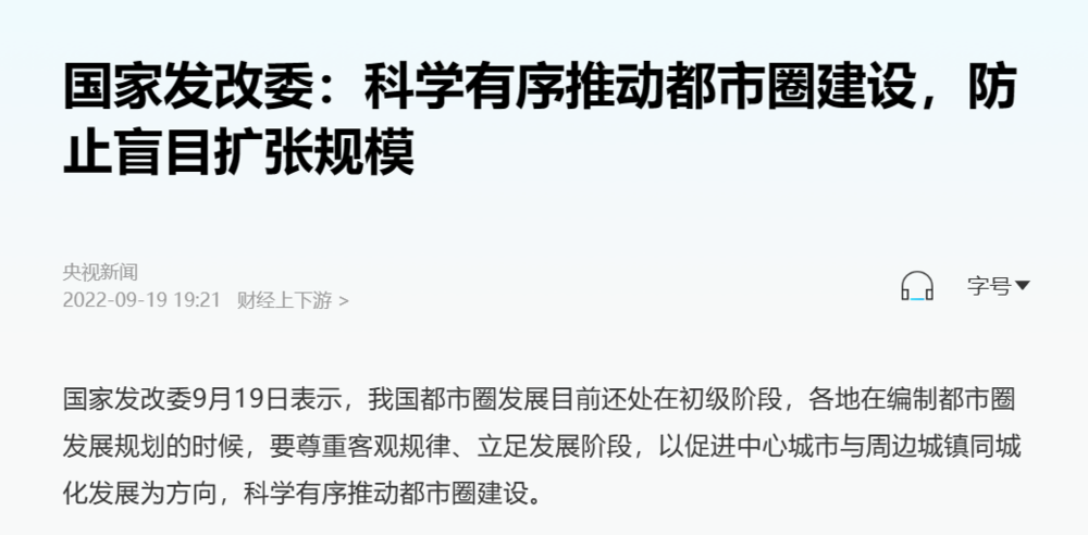 去年9月,國家發(fā)改委新聞發(fā)言人表示,我國都市圈發(fā)展還處在初級(jí)階段,各地要尊重客觀規(guī)律,不能跨越發(fā)展階段,在不具備條件的情況下推動(dòng)都市圈建設(shè)。(參閱《這些城市,“大都市圈”夢碎了?》)
