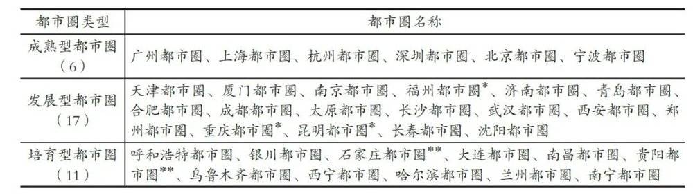 根據(jù)清華大學(xué)中國新型城鎮(zhèn)化研究院組編的《中國都市圈發(fā)展報(bào)告》,我國共有6個(gè)成熟型都市圈、17個(gè)發(fā)展型都市圈、11個(gè)培育型都市圈。