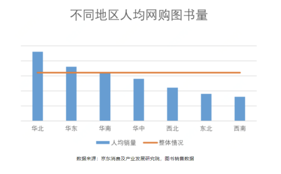 從區(qū)域來(lái)看,華北、華東地區(qū)人均網(wǎng)購(gòu)圖書量高于全國(guó)均值1%-4%,華南地區(qū)人均網(wǎng)購(gòu)圖書量與全國(guó)均值基本相當(dāng),華中、西北、東北、西南地區(qū)人均網(wǎng)購(gòu)圖書量低于全國(guó)均值。