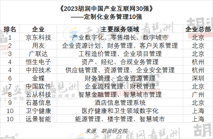 京東科技、用友、廣聯(lián)達(dá)、恒生電子、中控技術(shù)、金蝶、中國(guó)軟件、云從科技、石基信息、衛(wèi)寧健康、遠(yuǎn)景智能獲評(píng)“定制化業(yè)務(wù)管理10強(qiáng)”。