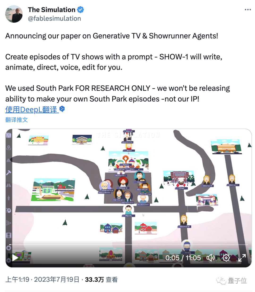 還有團(tuán)隊(duì)利用AI控制角色,在南方公園的背景之下做出了一集電視劇。