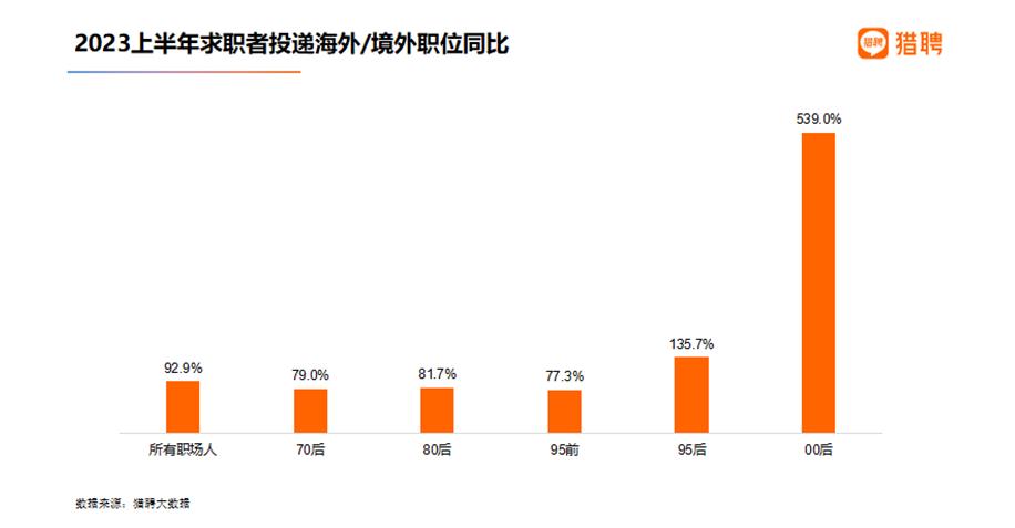 在人才出海、出境就業(yè)方面,獵聘發(fā)布的報(bào)告稱,隨著去年底疫情管控措施的放開,人才跨區(qū)域、跨境恢復(fù)往日的便利。2023上半年求職者投遞海外/境外職位同比去年同期增長(zhǎng)92.9%。