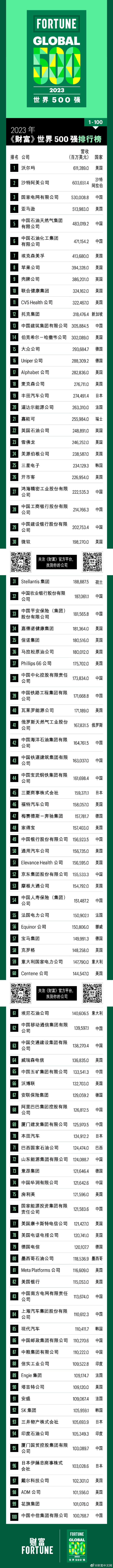 2023年財富世界500強(qiáng)排行榜揭曉:沃爾瑪蟬聯(lián)榜首,中國142家公司上榜