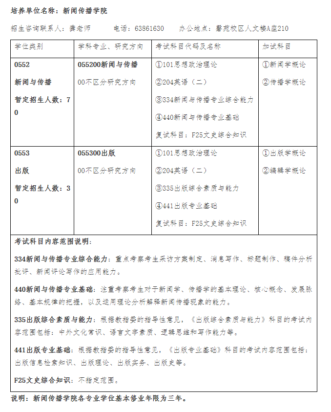 今年起 新聞傳播學院各專業(yè)學位學制為三年