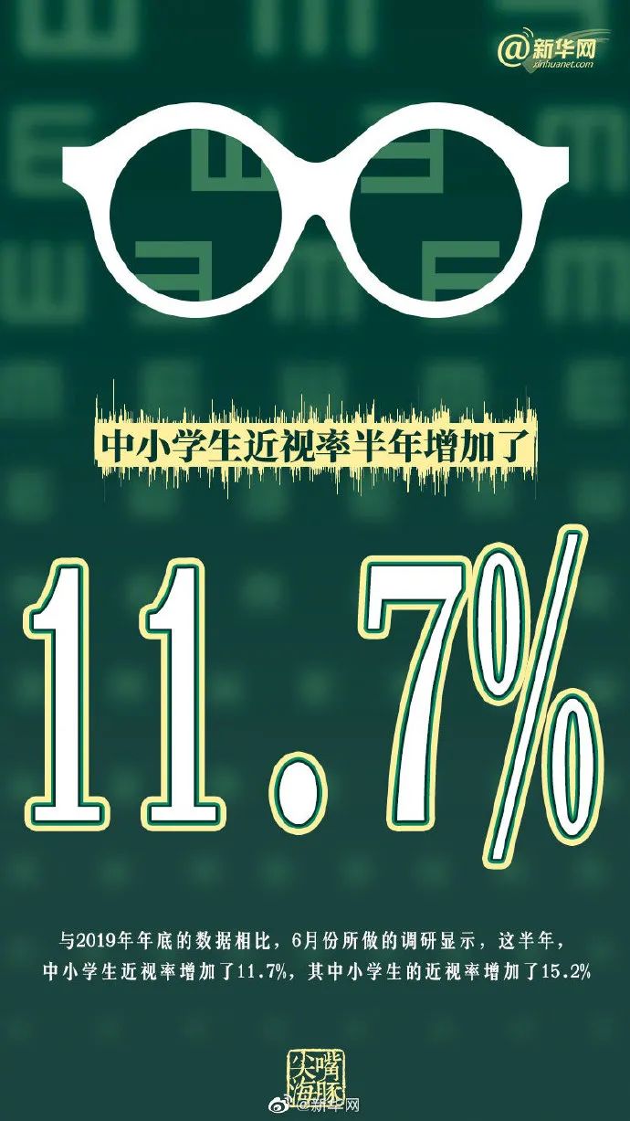 近期,教育部發(fā)布了中小學生視力情況抽樣調(diào)查,結(jié)果顯示,與2019年同期相比,9個省的中小學生近視率增加了11.7%,小學生的近視率增加最多,達到了15.2%。