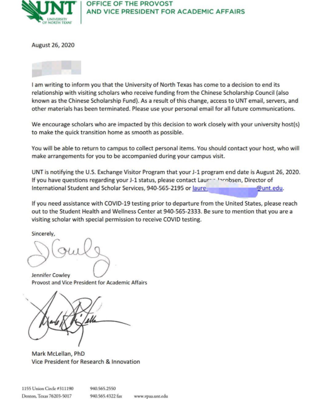 不過,截至我們發(fā)稿時,北得克薩斯州大學校方并沒有就其上周三宣布的這一驅趕中國公派學生和學者的決定,給出任何回應或說明。我們也尚未發(fā)現有任何美國的主流媒體報道了此事。