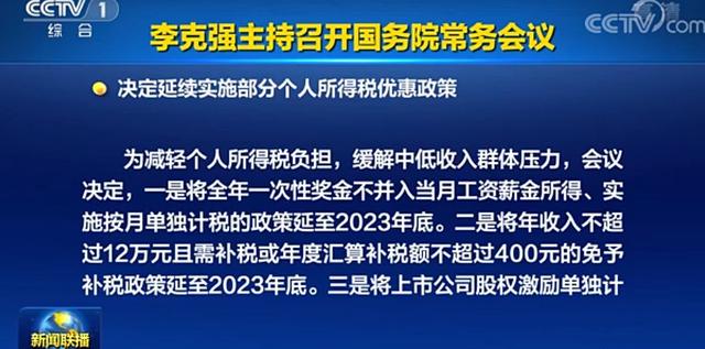 國常會:延續(xù)實(shí)施部分個人所得稅優(yōu)惠政策 一年可減稅1100億元