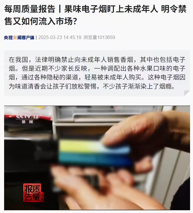 央視關(guān)注果味電子煙盯上未成年人,銷售“暗號”曝光