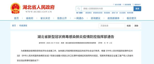 湖北最新通告:繼續(xù)嚴格管控離漢離鄂通道,繼續(xù)延遲開學11日,湖北省新型冠狀病毒感染肺炎疫情防控指揮部發(fā)布通告,對有序推進企業(yè)復工復產 ...
