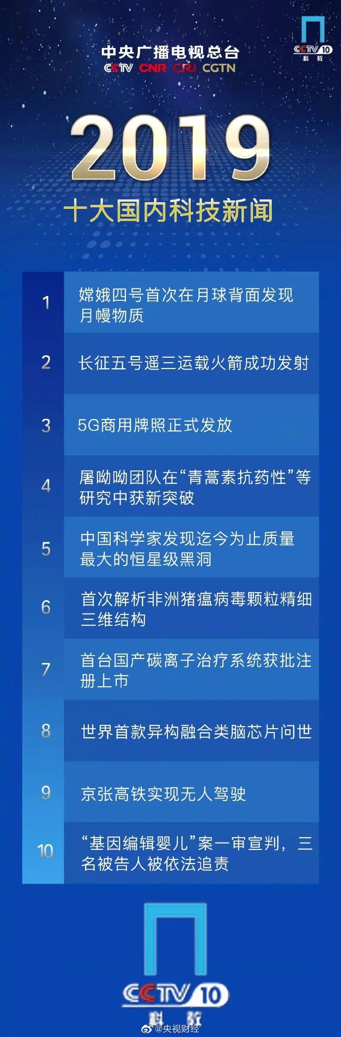 1月1日凌晨,中央廣播電視總臺發(fā)布了2019十大國內國際科技新聞。2019十大國內科技新聞包括:嫦娥四號首次在月球背面發(fā)現(xiàn)月幔物質、長征五號 ...