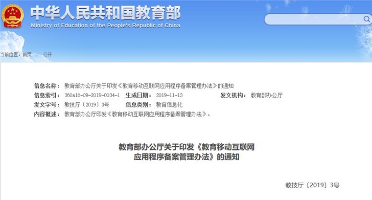 近日,教育部辦公廳印發(fā)《教育移動互聯(lián)網(wǎng)應用程序備案管理辦法》的通知,通知要求各單位于2019年12月1日至2020年1月31日前完成對現(xiàn)有教育移 ...