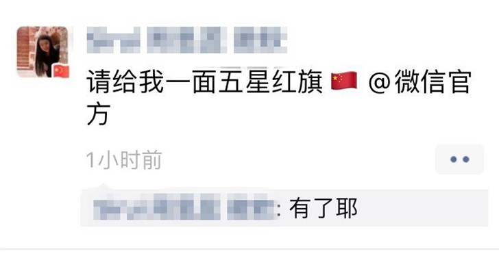 今天你的朋友圈被請給我一面國旗@ 微信官方刷屏了嗎?這到底是怎么回事,又是什么新花樣。除此之外,一堆人還在@微信官方 打錢來一個億,@ ...