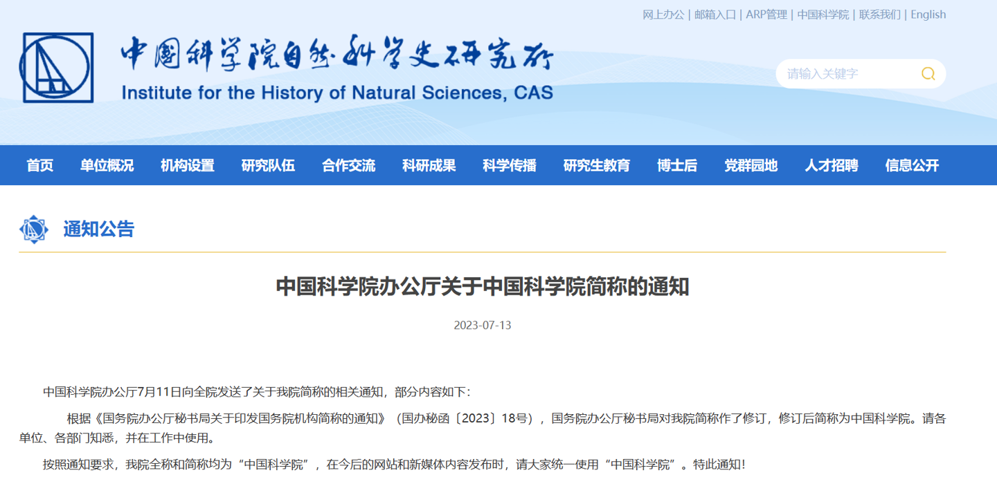 不叫“中科院” 官方簡稱修訂為“中國科學院”